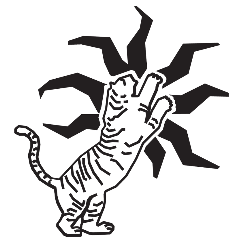 A light blue denim bomber featuring a bold crest-style embroidered tiger and palm motif, balancing street attitude with artisanal detail.